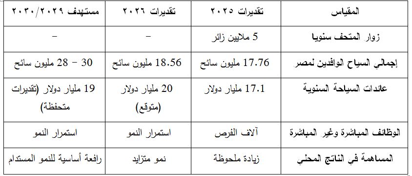 جدول 1 (تقديرات المتحف المصري الكبير حتى 2030)
